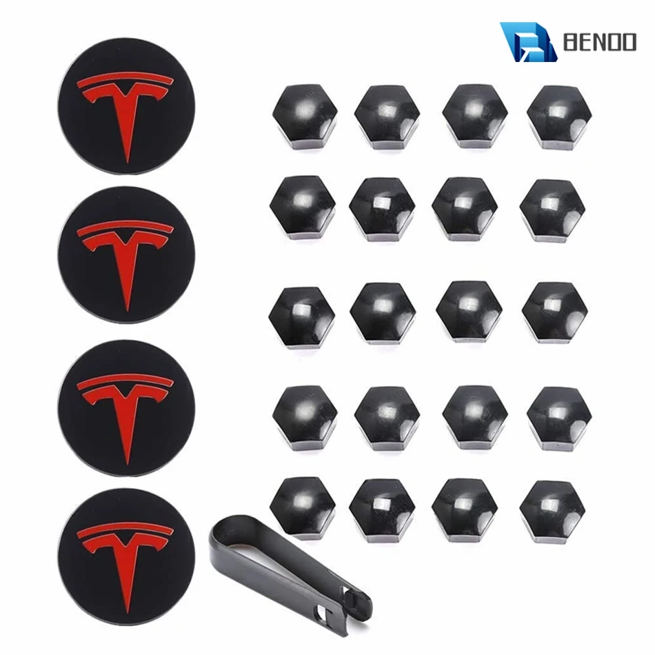 Name: BENOO-Tapas de cubo de rueda para Tesla Model 3/S/X con 4 tapas centrales y 20 tuercas de rueda, Kit de decoraciones Tesla, 25 uds.