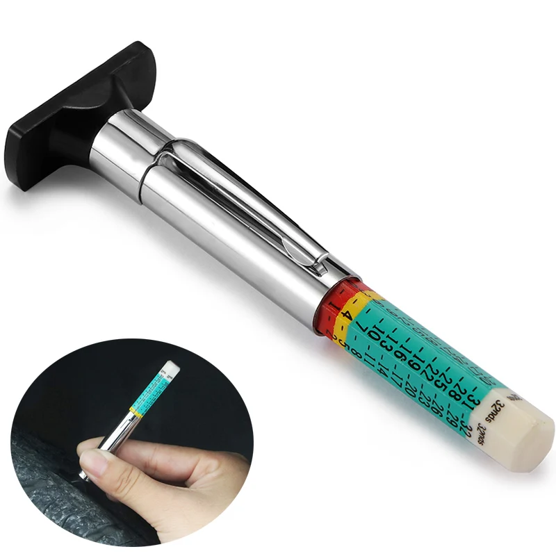 Name: Bolígrafo de medición de neumáticos de coche, herramienta de medición de profundidad de patrón de banda de rodadura de neumáticos Universal, indicador de detección de espesor cilíndrico automotriz de 25mm