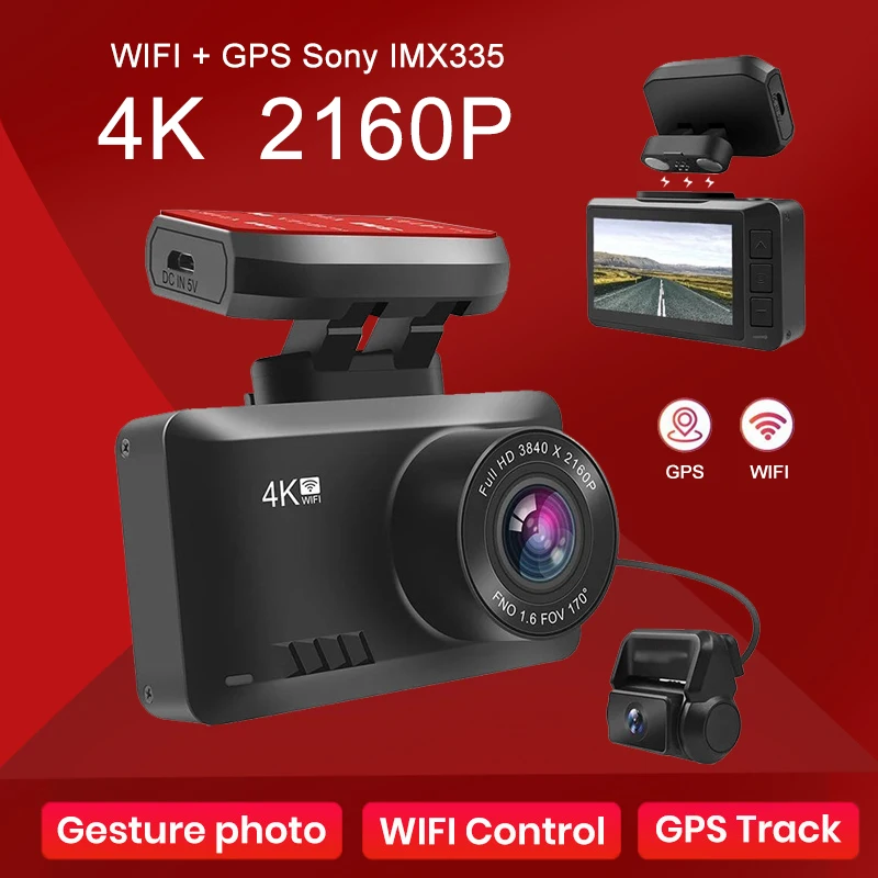 Name: Cámara de salpicadero 4K para coche, Dashcam con foto gestual, WiFi, 2,4 pulgadas, 3840x2160P, 30FPS, Ultra HD, grabador de vídeo DVR, GPS, rastreador
